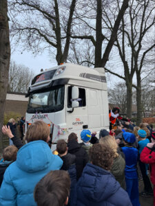 Wat was het weer een feest vandaag! Sinterklaas kwam om 9.00 uur aan in de vrachtwagen.